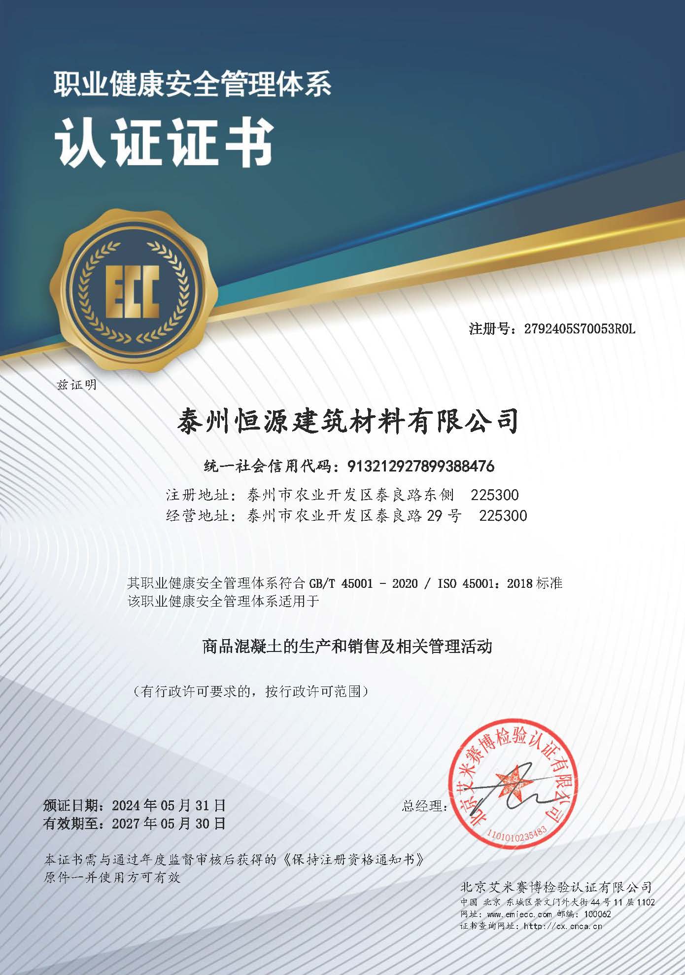 近期,泰州恒源建筑材料有限公司順利通過了GB/T14001  GB/T45001管理體系認證并已獲得了相關(guān)證書。這標志著我司已步入規(guī)范化、標準化、科學化的現(xiàn)代企業(yè)管理軌道,企業(yè)各項管理工作以及企業(yè)文化邁上了一個新的臺階。